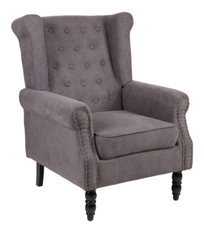 Фотелја Piore темно сива ткаенина и црна ногарка од дрво од гума 77x80x106 см