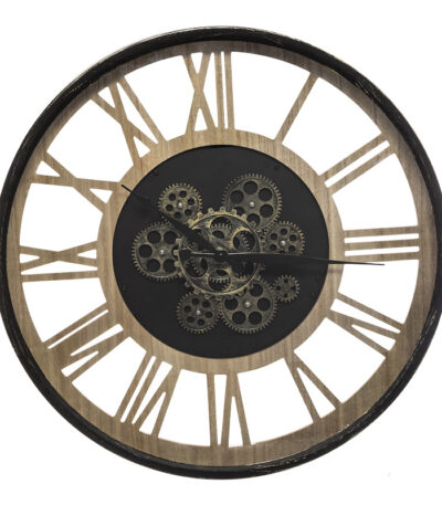 Ѕиден часовник Paul црн-природен метал-мдф Д57x6 см