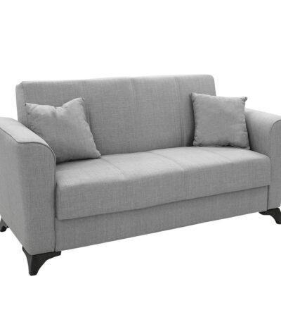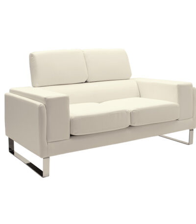 Двосед софа од ши PU боја на слонова коска-инокс 158x80x87 см