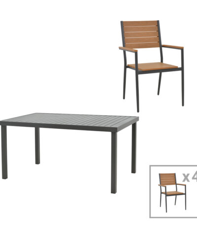 Трпезариска маса Vitality-Kliton Комплет од 5 антрацитни алуминиумски и иверица во природна нијанса 150x80x74 см