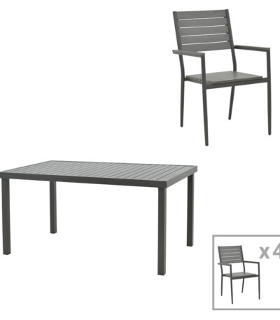Dining table Vitality-Kliton B set of 5 anthracite aluminum and gray plywood 150x80x74cm