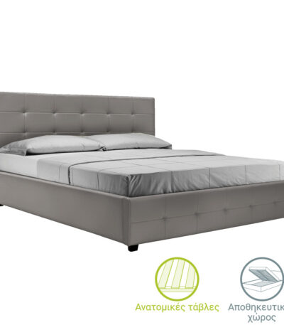 Двоен кревет Рои пу со простор за складирање во сива мат боја 160x200 см