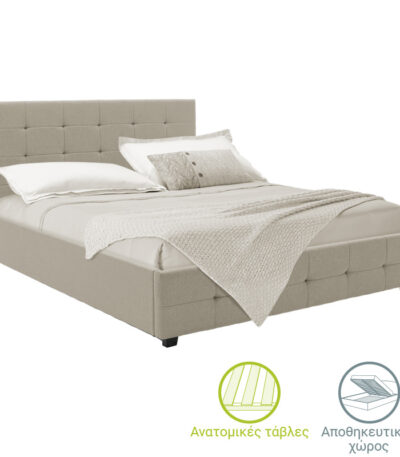Двоен кревет Рои од ткаенина со простор за складирање во боја на слонова коска 160x200 см