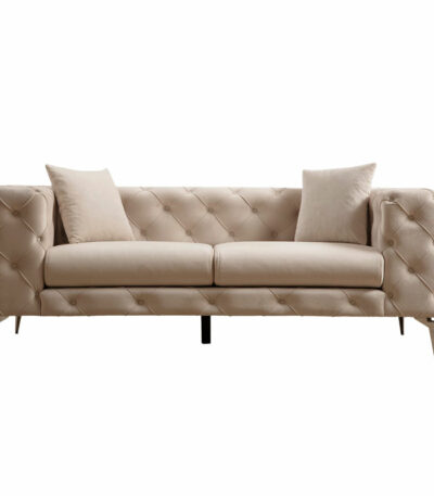 Двоседна софа тип Честерфилд PWF-0579 ткаенина екру 197x90x73 см
