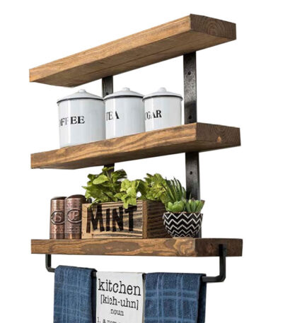 Wall set unit Suny solid pine wood walnut-black 75x9x68cm