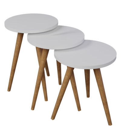 Помошни масички Perjene сет од 3 парчиња меламин во бела нијанса и дрвени ногарки