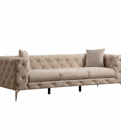 Троседна софа PWF-0579 од ткаенина тип Честерфилд, екру боја 237x90x73 см
