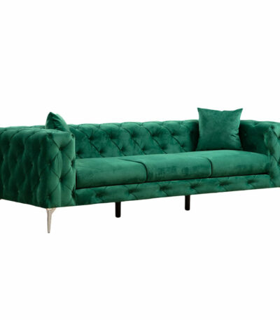 Троседна софа PWF-0579 тип Честерфилд, зелена ткаенина 237x90x73 см