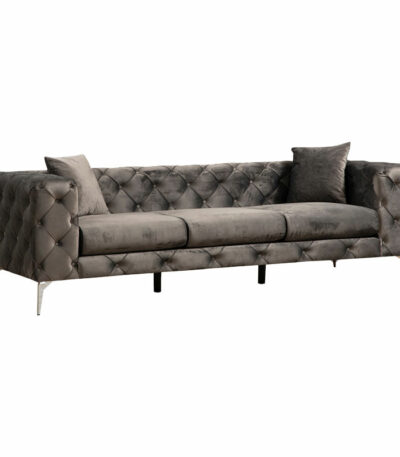 Троседна софа PWF-0579 од типот Честерфилд, темно сива боја 237x90x73 см