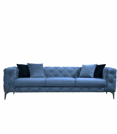 Троседна софа PWF-0579 тип Честерфилд, сина ткаенина 237x90x73 см