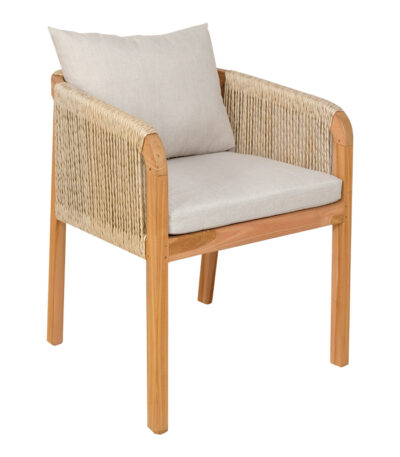 Фотелја од скелет од тиково дрво Clarin и јаже во природна нијанса 55x65x73 см