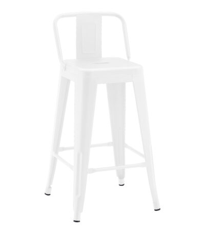 Mid-height bar stool with back Utopia metal in white matte shade 42x42x86cm