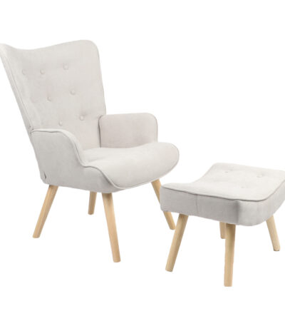 Фотелја со табуретка Vivienne ткаенина светло сива-природна ногарка 75x69x96 см