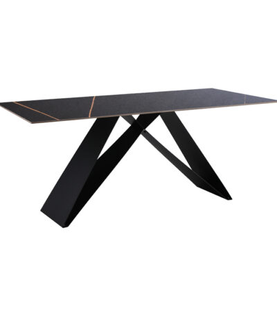 Meja sintered stone table black marble – metal legs 180x90x76cm