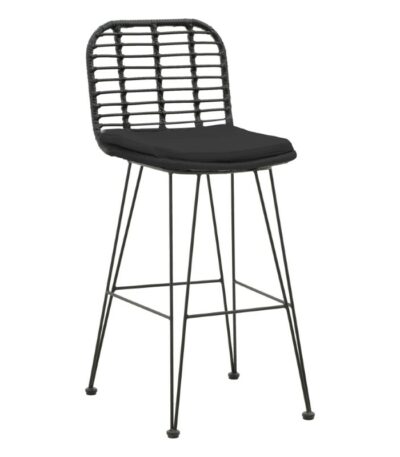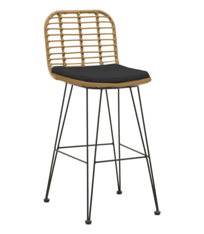 Ратан стол Naoki во природна нијанса со црна перница и црна метална ногарка 45x60x83 см