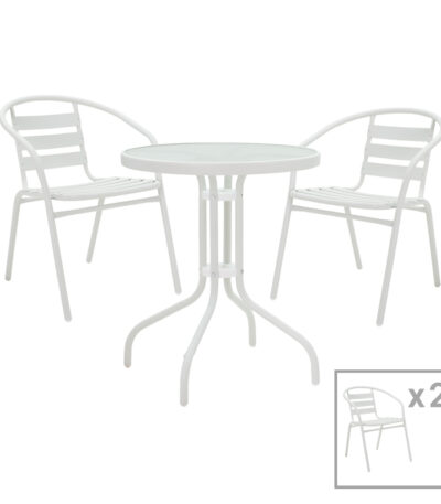 Tade-Watson dining table set of 3 white metal D60x70cm