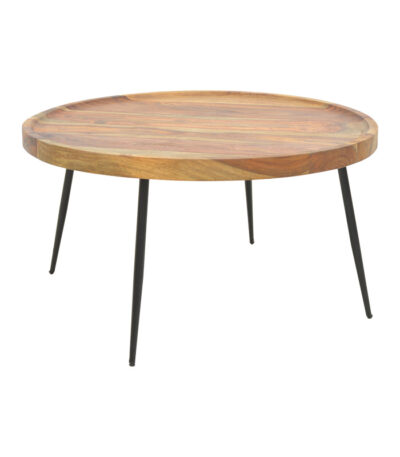 Маса Таволо, од цврсто шишам дрво во боја на орев со црни метални ногарки, Φ75x39 см