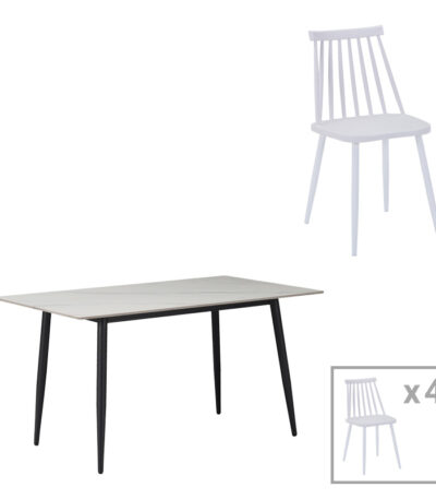 Трпезариски маси Aurora-Cuba сет од 5 пп-мдф во бела-сонома боја 120x80x75 см