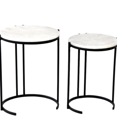 Комплет од 2 странични маси за дневна соба Luxere Inart црна метална-бела мермерна