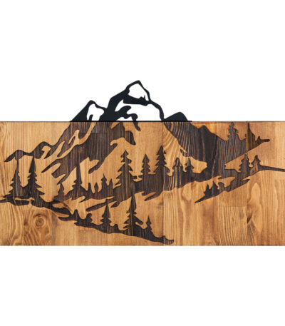 Декорација за ѕид од планински бор во природна боја и црн метал 57.5x3x33 см