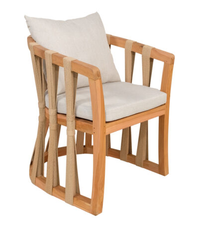 Фотелја Елаиза паковорл од тиково дрво и јаже во природно-беж нијанса со перница 58x60x90 см