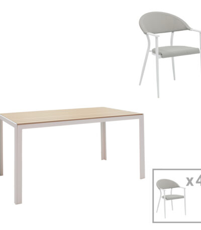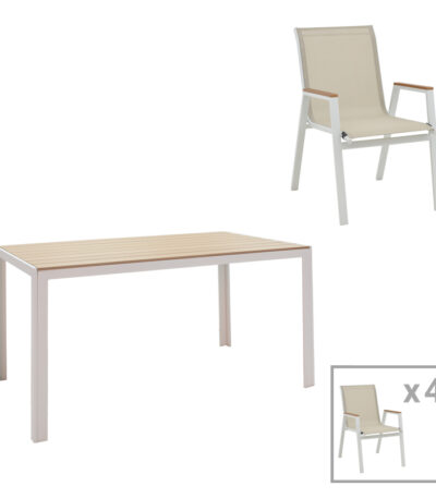 Dining table Nares-Azelie A set of 5 white aluminum and plywood in a natural shade 140x80x72.5cm