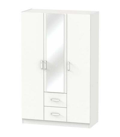 Трикрилен плакар од меламин во бел стил „Дилион“ 120x52x190 см