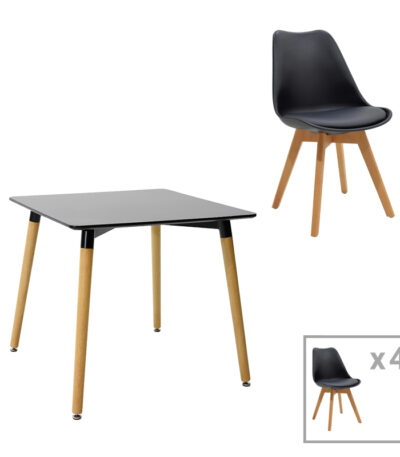 Трпезариска маса Натали-Гастон сет од 5 MDF и буково дрво во црна-природна нијанса 80x80x76 см