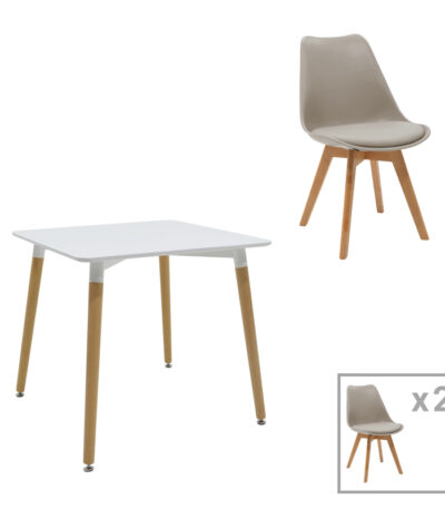 Трпезариска маса Натали-Гастон сет од 5 MDF и буково дрво во сиво-бела-природна нијанса 80x80x76 см