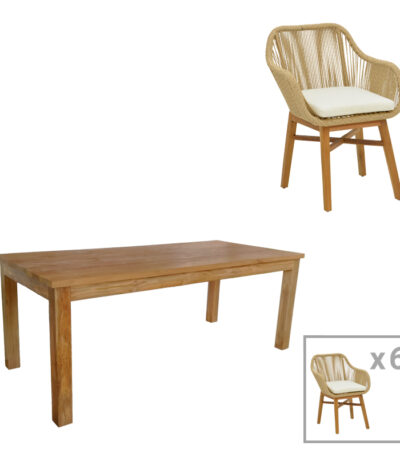 Трпезариски сет Kalie-Wooly 7 парчиња во природно-беж нијанса 220x90x75 см