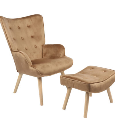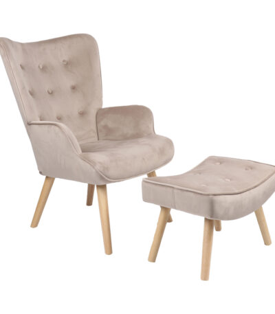 “Armchair with footstool Vivienne velvet fabric beige-natural leg 75x69x96cm&rdquo е додаден во Вашата кошничка. Погледни кошничка