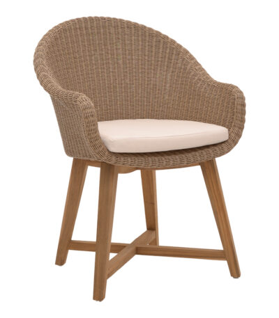 Фотелја Solso алуминиумски скелет со ногарки од тиково дрво во природна нијанса и пе ратан 62x58x78 см