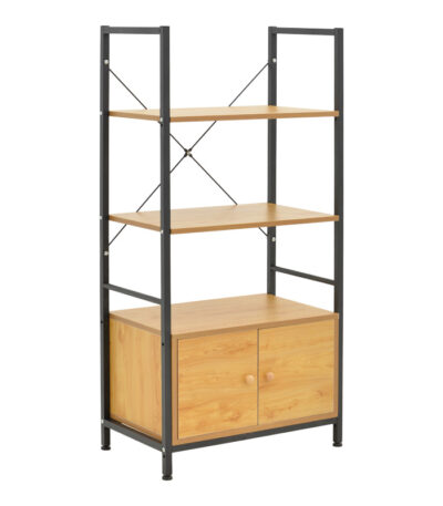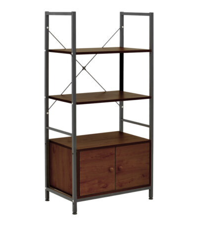 Полица на под со шкаф Куили метална црна-мдф во нијанса на орев 60x36x121 см