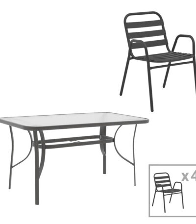 Трпезариски сет 5 парчиња Ensure-Sussie метал-стакло темно сива 140x80x70 см