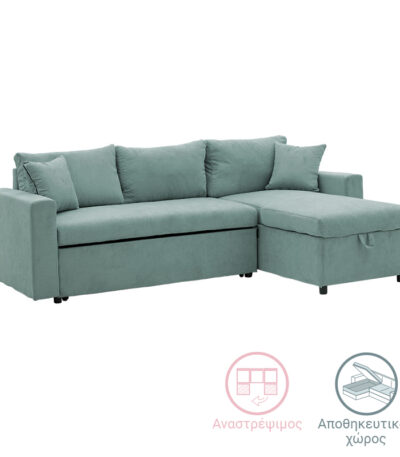 Аголна гарнитура-кревет реверзибилна ткаенина Лилијан зелена нане 225x148x81 см