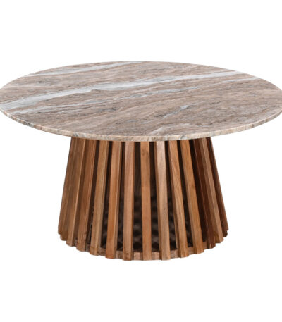 Масичка за кафе Sergy од цврсто акација во природна боја и мермерен плот D90x40cm