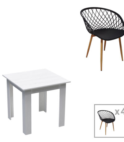 Трпезариска маса Naoki V сет од 5 ратан pe во природна нијанса и црн метал 80x80x78 см