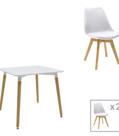 Трпезариска маса Натали-Гастон сет од 3 парчиња во бела боја 80x80x76 см