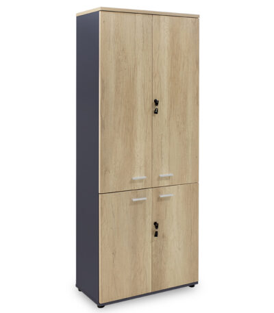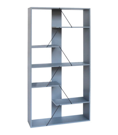 Полица за книги со четири дрвени вратички Лотус во даб – темно сива боја 80×40,5x200 см