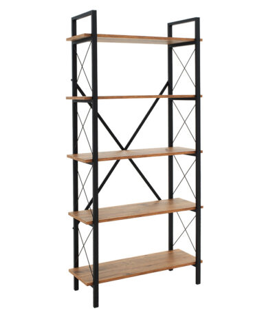 Полица за книги Тикилмо даб мелами-црн метал 88x34x180 см