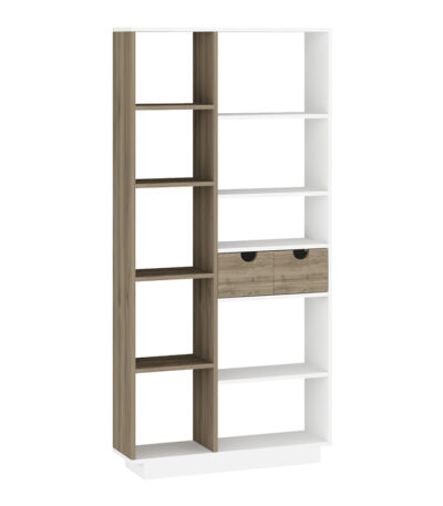 Полица за книги со фиоки Дакин во бела-оревова нијанса 80x25x190 см