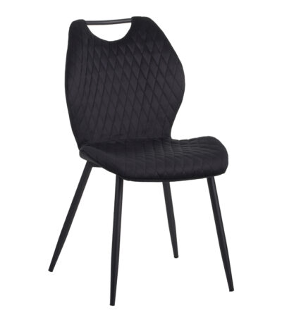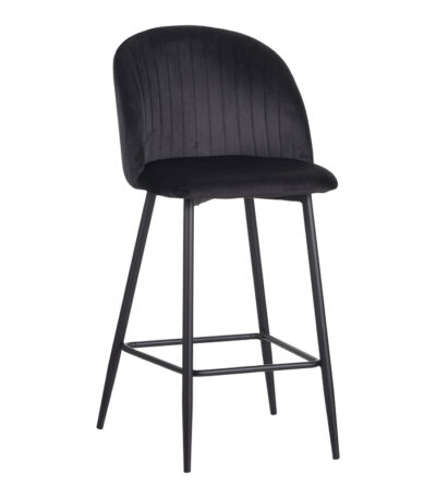 Барска столица „Баров“ од кадифе во црна нијанса со црни метални ногарки 53×46,5×96,5
