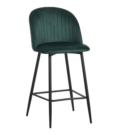 Барска столица од кадифе Barow во темно зелена нијанса со црни метални ногарки 53×46,5×96,5