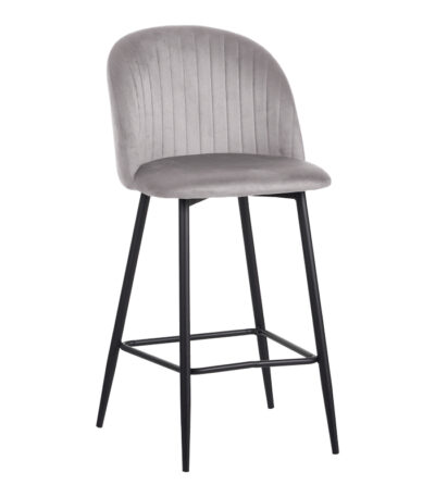 Барска столица Бела со средна висина, светло сива кадифена и црна метална ногарка 41x47x93 см