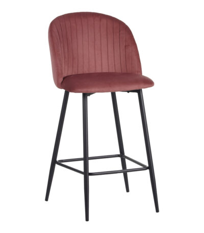 Барска столица „Баров“ од кадифе во нијанса на скапано јаболко со црни метални ногарки 53×46,5×96,5