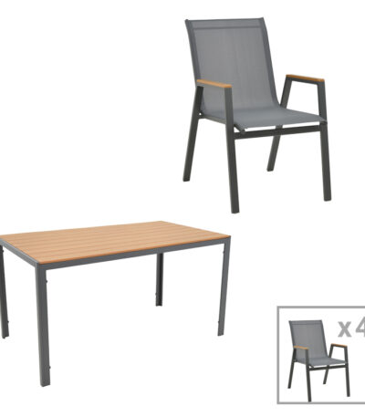 Трпезариска маса Naoki X сет од 5 ратан pe во природна нијанса и црн метал 160x90x78 см