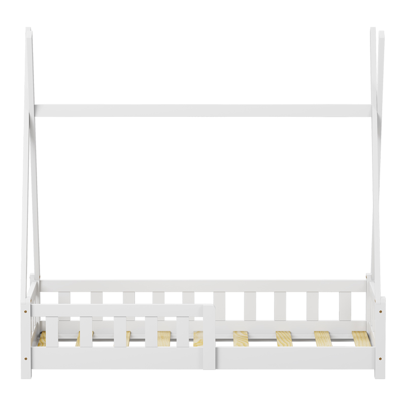 Детски кревет Noam со огради од типот Монтесори од борово дрво во бела боја 70x140 см