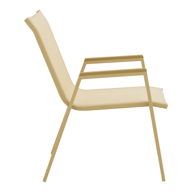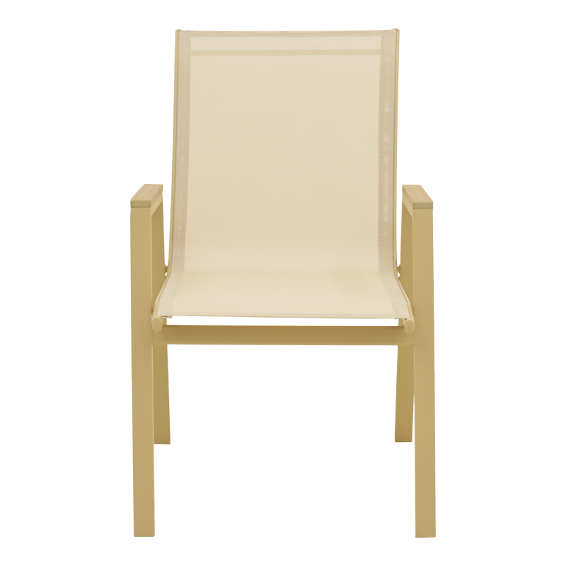 Azelie stackable armchair, aluminum in cappuccino-textilene champagne 56x75x88cm
