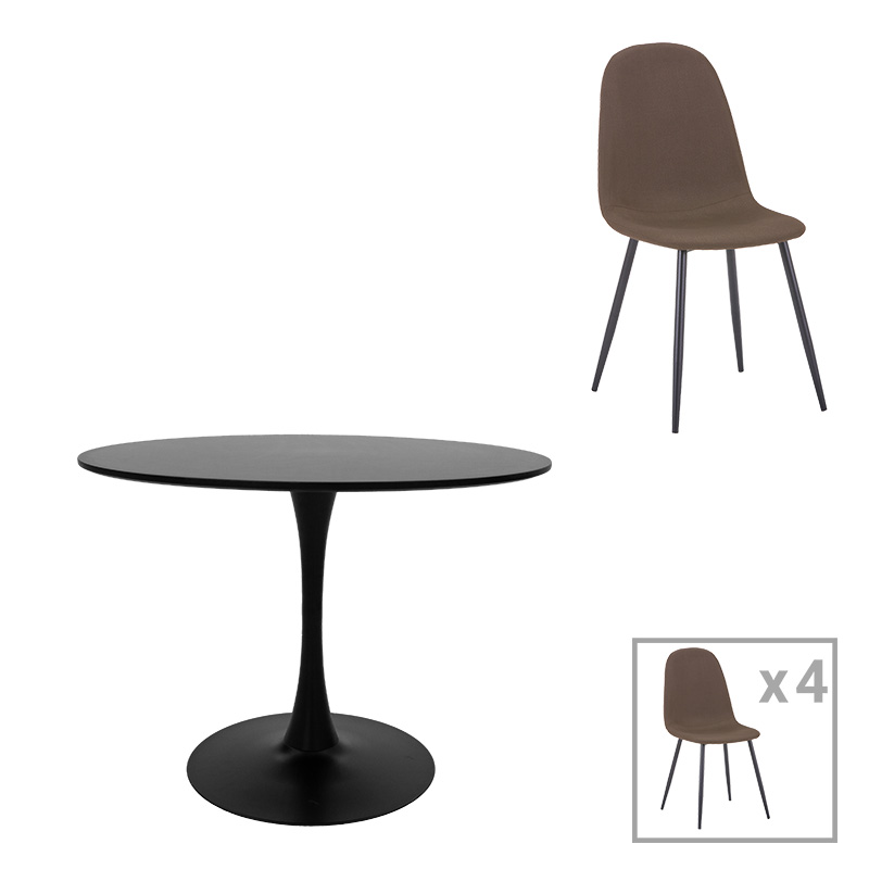 Bella-Balou dining table set of 5 pcs MDF black-black fabric D120x73cm