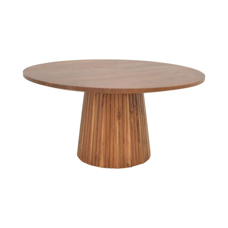 The impressive round Canicule II table is an elegant and functional addition to any contemporary space. Crafted from high-quality acacia wood with a rich, warm tone, it creates an inviting atmosphere with timeless appeal. A piece of furniture that combines high quality with enduring design.